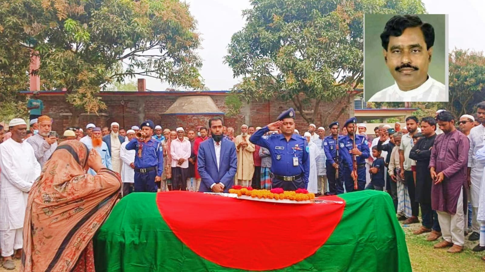 এর আগে আজ দুপুর ১২টার দিকে টাঙ্গাইল জেলা কোর্ট চত্বরে তাঁর প্রথম জানাজা অনুষ্ঠিত হয়। পরে লাশ নিয়ে নিয়ে আসা হয় গ্রামের বাড়ি সখিপুর উপজেলার বেড়বাড়ীতে। সেখানে বীর মুক্তিযোদ্ধা হিসেবে তাঁকে গার্ড অব অনার দেওয়া হয়। বেলা তিনটার দিকে দ্বিতীয় জানাজা শেষে পারিবারিক কবরস্থানে তাঁকে দাফন করা হয়।