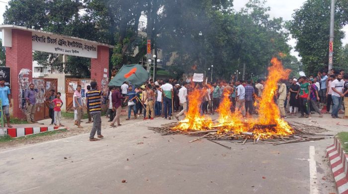 ঠাকুরগাঁওয়ে কোটা আন্দোলনকারীদের মিছিল-স্লোগান, আন্দোলনকারী শিক্ষার্থীদের সাথে ছাত্রলীগের দফায় দফায় সংঘর্ষ আর পরিস্থিতি নিয়ন্ত্রণে পুলিশের টিয়ারশেল নিক্ষেপের আওয়াজে স্থবির হয়ে পড়ে জেলা শহর ঠাকুরগাঁও। স্বাভাবিক চলাচল ব্যাহত হয়ে থমথমে অবস্থা