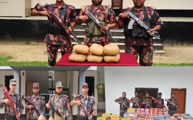 যশোরের বেনাপোল ও চৌগাছা সীমান্তে অভিযান চালিয়ে ৪০ লক্ষ ৬৩ হাজার ৯০০ শত ৫০ টাকা মূল্যের ভারতীয় গাঁজা, বাংলা মদ, শাড়ী, চকলেট, বিভিন্ন প্রকার বাজি, বিভিন্ন প্রকার ভারতীয় ঔষধ এবং