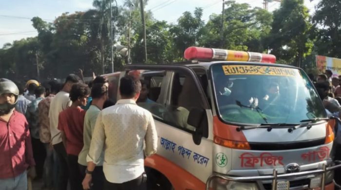 কোটা সংস্কার আন্দোলনকারীদের সঙ্গে বুধবার সংঘর্ষে নিহত ঢাকা কলেজ ছাত্রলীগের কর্মী সবুজ আলীর লাশবাহী অ্যাম্বুলেন্স ঘিরে বিক্ষোভ করেছেন নেতাকর্মীরা। বুধবার দুপুরে রাজধানীর শাহবাগ মোড়ে এ বিক্ষোভ হয়। এর আগে
