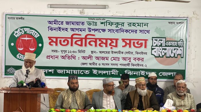 আবু বক্কর সিদ্দিক স্বপন : ঝিনাইদহে বাংলাদেশ জামায়াতে ইসলামীর আমির ড. শফিকুর রহমানের আগমন উপলক্ষে সংবাদ সম্মেলন ও সাংবাদিকদের সঙ্গে মতবিনিময় সভা অনুষ্ঠিত হয়েছে। শনিবার দুপুরে শহরের আল-হেরা এলাকার জামায়াতের