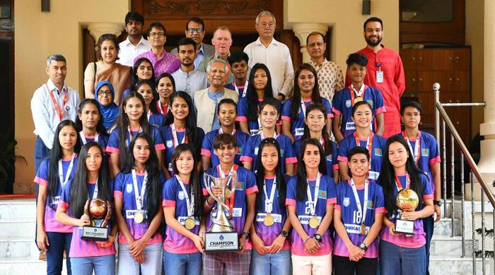 সাফজয়ী নারী ফুটবল দলকে সংবর্ধনা দিয়েছেন প্রধান উপদেষ্টা অধ্যাপক ড. মুহাম্মদ ইউনূস। শনিবার (২ নভেম্বর) বেলা ১১টায় রাষ্ট্রীয় অতিথি ভবন যমুনায় এ সংবর্ধনার দেওয়া হয়। এর আগে সকাল সাড়ে ১০টায়