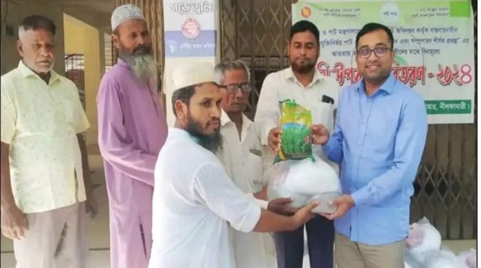সোহেল রানা,ডোমারঃ উন্নত প্রযুক্তিনির্ভর পাট ও পাটবীজ উৎপাদন এবং সম্প্রসারণ প্রকল্পের আওতায় নীলফামারীর ডোমারে পাটচাষিদের মাঝে বিনামূল্যে পাটবীজ, সার ও কীটনাশক বিতরণ কার্যক্রম অনুষ্ঠিত হয়েছে। বুধবার (৪ঠা সেপ্টেম্বর) দুপুরে উপজেলা