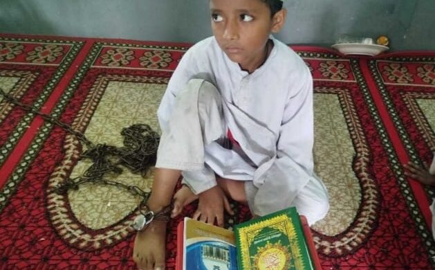 পিরোজপুরের ভাণ্ডারিয়ায় এক কওমি মাদ্রাসায় অমানবিক নির্যাতনের ঘটনা প্রকাশ পেয়েছে। উপজেলার ধাওয়া ইউনিয়নের দারুল উলুম হাফিজিয়া কওমি মাদ্রাসা থেকে পায়ে শিকল বাঁধা অবস্থায় ওসমান মল্লিক (৬) নামের এক শিশু শিক্ষার্থীকে