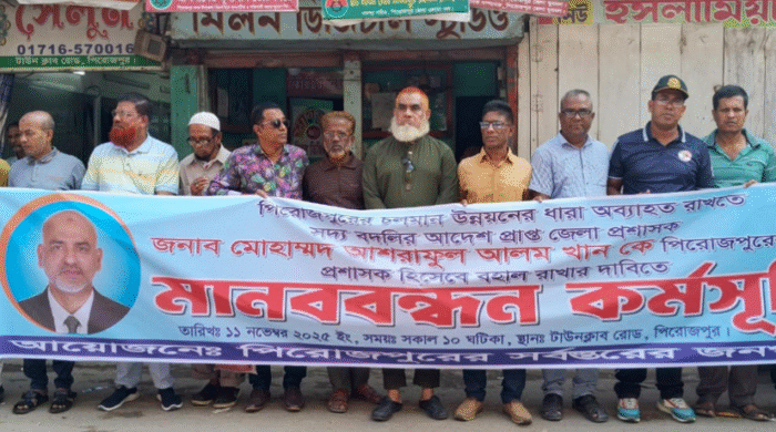 পিরোজপুরের চলমান উন্নয়ন কার্যক্রমের ধারাবাহিকতা রক্ষার দাবিতে সদ্য বদলির আদেশপ্রাপ্ত জেলা প্রশাসক মোহাম্মদ আশরাফুল আলম খানকে বর্তমান পদে বহাল রাখার আহ্বান জানিয়ে সকালে একটি মানববন্ধন অনুষ্ঠিত হয়েছে। মঙ্গলবার (১১ নভেম্বর) read more