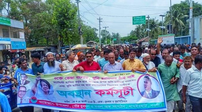 ধামইরহাট নওগাঁ প্রতিনিধি: নওগাঁর ধামইরহাটে বিএনপি’র বিক্ষোভ ও অবস্থান কর্মসূচি পালিত হয়েছে। উপজেলা বিএনপি ও সহযোগী সংগঠনের উদ্যোগে ১৪ ও ১৫ আগষ্ট ফ্যাসিস্ট শেখ হাসিনা কর্তৃক ছাত্র-জনতার উপরে গুলি চালিয়ে