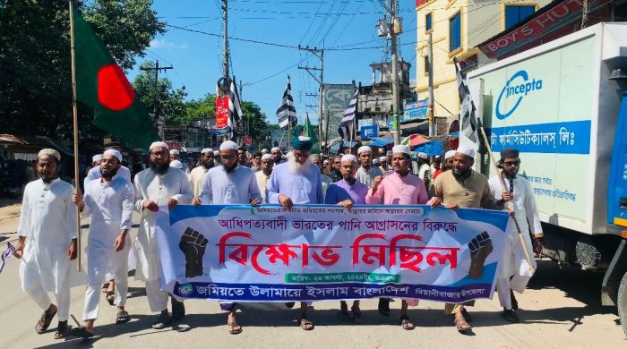 মুশফাকুর রহমান সিলেট জেলা প্রতিনিধি বাংলাদেশ-ভারত অভিন্ন নদীর ন্যায্য হিস্যা নিশ্চিত করা, উজানে বাঁধ বন্ধ করা সহ আধিপত্যবাদী ভারতের আগ্রাসনের বিরুদ্ধে বিক্ষোভ মিছিল করেছে জমিয়তে উলামায়ে ইসলাম বাংলাদেশ বিয়ানীবাজার উপজেলা।