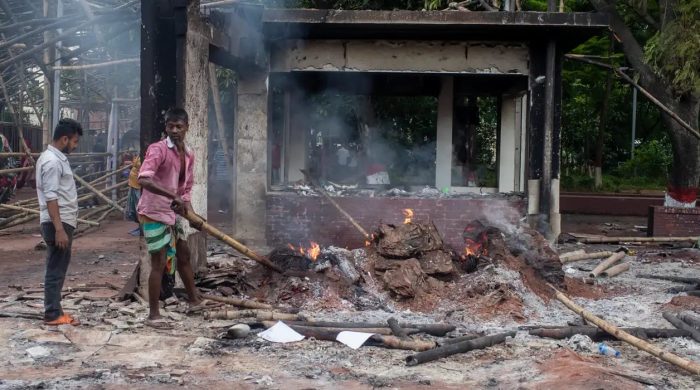 ব্যুরো ডেস্ক চলমান বৈষম্য বিরোধী ছাত্র আন্দোলনের ব্যাপক সংহিসতায় লন্ডভন্ড হবিগঞ্জ জেলার মাধবপুর উপজেলা সদর। রবিবার (৪ আগষ্ট), সকাল ১১.৩০ থেকে মাধবপুরে তান্ডব চালায় আন্দোলনকারীরা। পুলিশের পিকআপে আগুন,মোটর সাইকেলে আগুন,